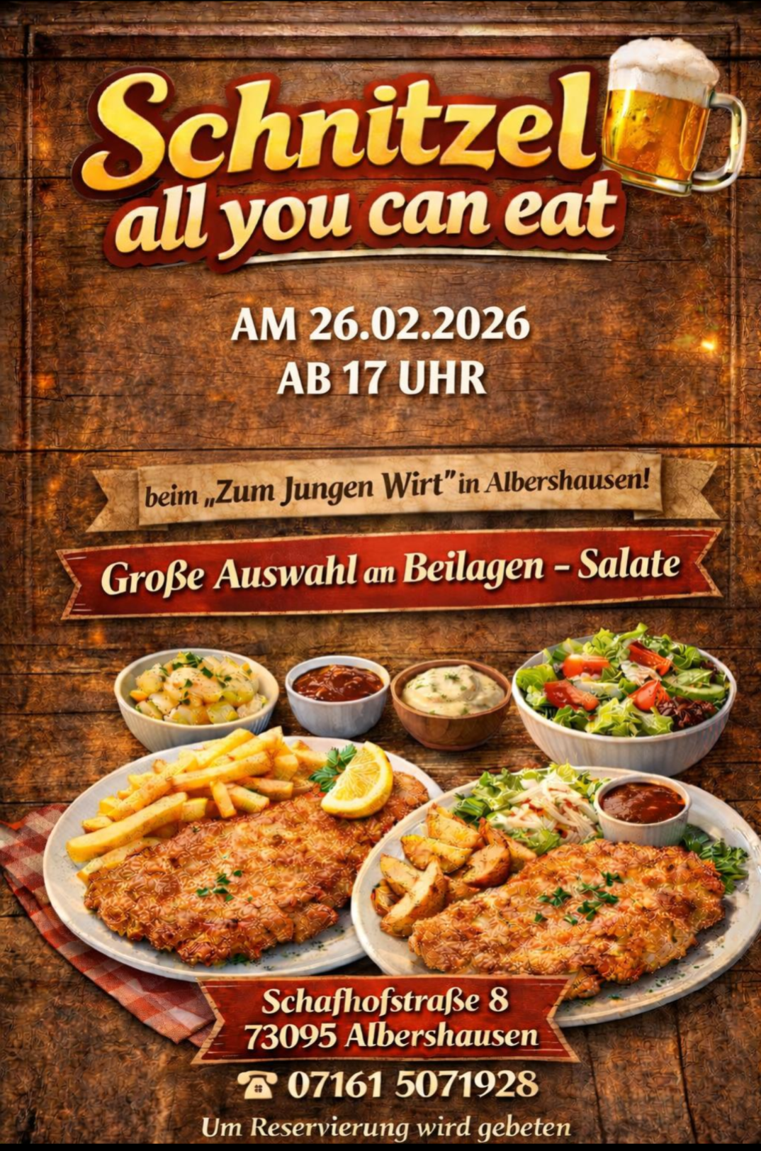 Um Reservierung wird gebeten unter 07161/5071928