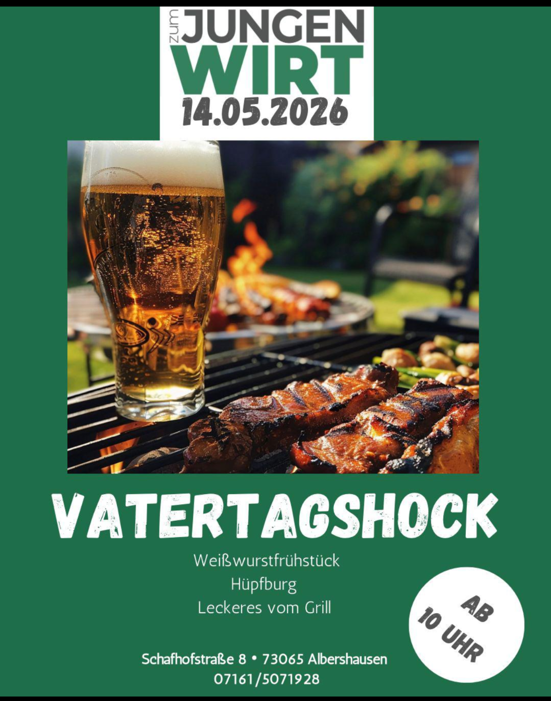 Vatertagshock am 14.05.2026 ab 10 Uhr mit Weißwurstfrühstück, leckeres vom Grill, Getränken, Hüpfburg, …